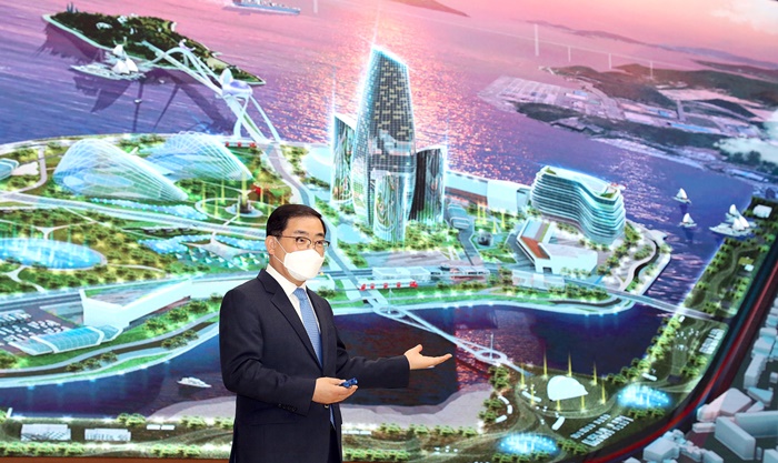 ¶ÇÇÑ “Àӱ⠳»¿¡ °¡½ÃÀûÀÎ ¼º°ú¸¦ ³»±â À§ÇØ Á¶±ÞÇÏ°Ô »ç¾÷À» ä¿ö ³Ö±â º¸´Ù, ´õ ¸Õ ¹Ì·¡¸¦ »ý°¢ÇØ ½ÅÁßÇÏ°Ô ÃßÁøÇϰڴٔ¸é¼, “¸¶»êÇØ¾ç½Åµµ½ÃÀÇ ¼º°øÀû °³¹ßÀ» ÅëÇØ â¿ø½ÃÀÇ °æÁ¦ Ȱ·Â°ú Çõ½Å¼ºÀåÀ» À̲ø¾î ¼¼°èÀûÀÎ µµ½Ã°æÀï·ÂÀ» ³ô¿© ³ª°¡°Ú´Ù”°í Æ÷ºÎ¸¦ ¹àÇû´Ù.