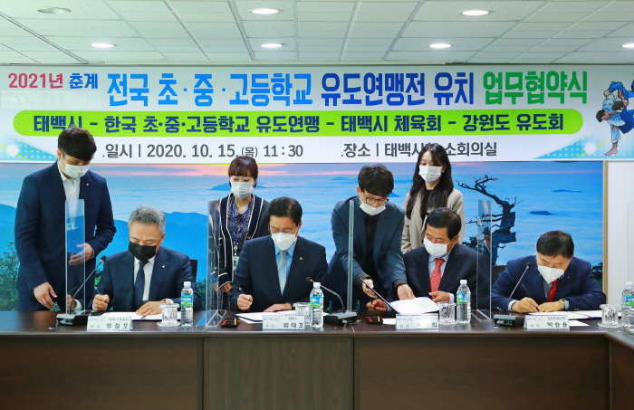 [½Ã»çÄÚ¸®¾ÆÀú³Î=À̰æÁ÷ ±âÀÚ] Źé½ÃüÀ°È¸(ȸÀå ·ùöȣ)¿Í Çѱ¹ ÃÊ·Áß·°í À¯µµ¿¬¸Í(ȸÀå À̹«Èñ), °¿øµµÀ¯µµÈ¸(ȸÀå ¹Ú½Â¿ë)´Â 15ÀÏ ¿ÀÀü 11½Ã 30ºÐ Źé½Ãû ¼ÒȸÀǽǿ¡¼ 2021³â Ãá°è Çѱ¹ ÃÊ·Áß·°íµîÇб³ À¯µµ¿¬¸ÍÀü °³ÃÖ¸¦ À§ÇÑ ¾÷¹« Çù¾àÀ» ü°áÇß´Ù.