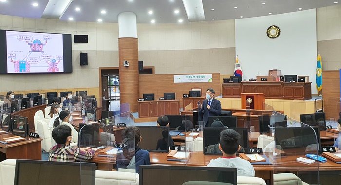 | â¿ø½ÃÀÇȸ´Â 14ÀÏ ÀÇȸ º»È¸ÀÇÀå¿¡¼ 'ÃÊ·Ï¿ì»ê ¾Æµ¿ÀÇȸ' Çлýµé¿¡°Ô ÀÇȸÀÇ ¿ªÇÒ°ú ±â´É¿¡ ´ëÇØ ¼³¸íÇÏ´Â ½Ã°£À» °¡Á³´Ù |