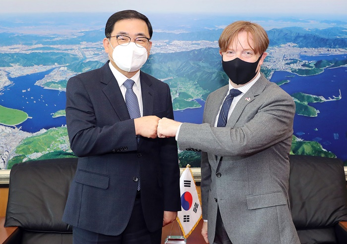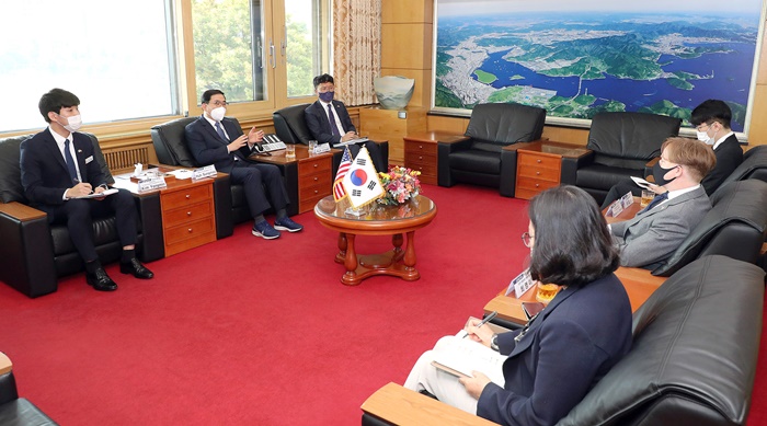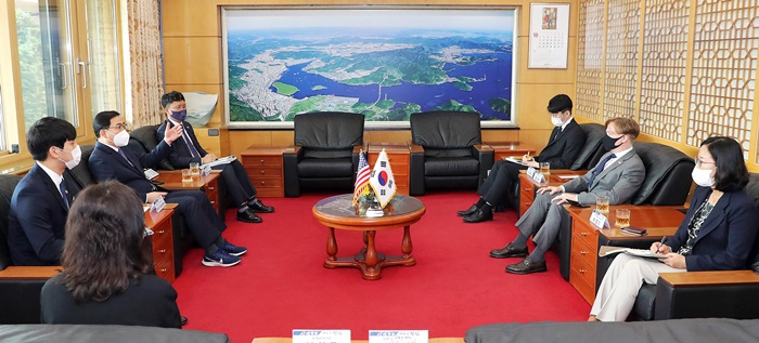 [½Ã»çÄÚ¸®¾ÆÀú³Î=Á¤Á¾¹Î ¼±ÀÓ±âÀÚ] Ç㼺¹« â¿ø½ÃÀåÀº 15ÀÏ ½Ãû Á¢°ß½Ç¿¡¼ °íµç óġ ½ÅÀÓ ÁÖÇѹ̱¹¿µ»ç¿Í ¸¸³ª ´º³ë¸Ö ½Ã´ë µ¿¹ÝÀڷμ »óÈ£Çù·Â¹æ¾È¿¡ ´ëÇØ ³íÀÇÇÏ´Â ½Ã°£À» °¡Á³´Ù.