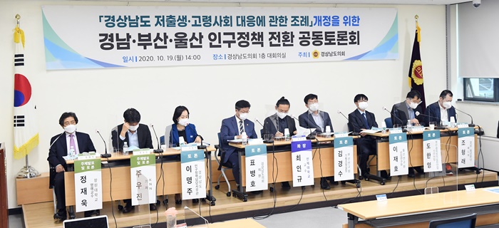 [½Ã»çÄÚ¸®¾ÆÀú³Î=Á¤Á¾¹Î ¼±ÀÓ±âÀÚ] °æ³²µµÀÇȸ ¹®Èº¹ÁöÀ§¿øÈ¸ Ç¥º´È£ ÀÇ¿øÀº 19ÀÏ ´ëȸÀǽǿ¡¼ ‘°æ»ó³²µµ ÀúÃâ»ý · °í·É»çȸ ´ëÀÀ¿¡ °üÇÑ Á¶·Ê’ °³Á¤À» À§ÇÑ °æ³² · ºÎ»ê · ¿ï»ê Àα¸Á¤Ã¥ Àüȯ Àü¹®°¡ Åä·Ðȸ¸¦ °³ÃÖÇß´Ù.
