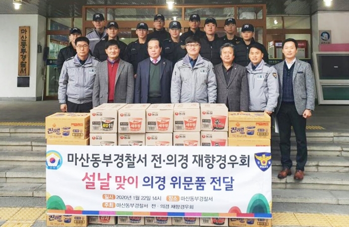 | ¸¶»êµ¿ºÎ°æÂû¼ Àü·Àǰæ ÀçÇâ°æ¿ìȸ ±èÁ¾½Ä ȸÀå(¾ÕÁÙ ¿ÞÂÊ ¼¼¹øÂ°)ÀÌ Áö³ 1¿ù ¼³³¯À» ¾ÕµÎ°í ¸¶»êµ¿ºÎ°æÂû¼ 112Ÿ°Ý´ë Àǹ«°æÂûÀ» ã¾Æ°¡ ÄÅ ¶ó¸é°ú °£½ÄÀ» Áö¿øÇØ º´¿µ»ýȰ¿¡ ÈÄ¹è ´ë¿øµéÀÇ »ç±âÁøÀÛÀ» °íÃëÇß´Ù. |