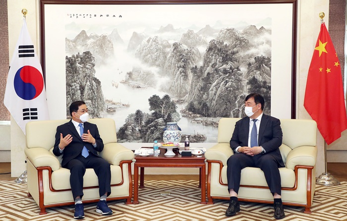 | Ç㼺¹« â¿ø½ÃÀå(¿ÞÂÊ)°ú ½ÌÇÏÀÌ¹Ö ÁÖÇÑÁß±¹´ë»ç°¡ ¸é´ãÀ» Çϰí ÀÖ´Ù. |