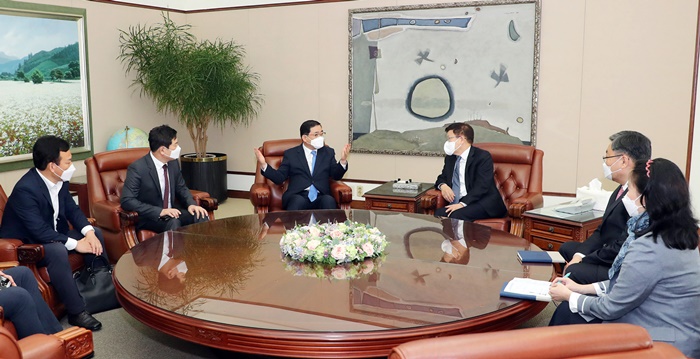 Çã ½ÃÀåÀº ÀÌ¾î “Æ¯È÷ Äڷγª °æÁ¦ À§±â ±Øº¹À» À§ÇØ ±¹³» ±â¾÷°ú È»ó°úÀÇ ºñÁî´Ï½º ±³¿ª È®´ë¿Í µ¿¹ÝÀÚ °ü°è Çü¼ºÀÇ Çʿ伺¿¡ ±è¿µÁÖ È¸Àå°ú ½ÌÇÏÀÌ¹Ö ´ë»ç ¸ðµÎ °ø°¨Çß´Ù"¸é¼ "Çѱ¹¹«¿ªÇùȸ ¹× ÁÖÇÑÁß±¹´ë»ç°üÀÇ ´Ù¾çÇÑ ÇùÁ¶¸¦ ÅëÇØ â¿øÀÌ ±¹³» ±â¾÷°ú È»ó°úÀÇ ±³¿ª Áß½ÉÀÌ µÉ ¼ö ÀÖµµ·Ï ÃÖ¼±À» ´ÙÇϰڴٔ°í ¸»Çß´Ù.