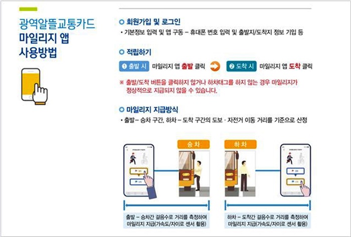 ±¤¿ª¾Ë¶ãÄ«µå·Î ´ëÁß±³Åë ÀÌ¿ë ½Ã, ´ëÁß±³Åë ÀÌ¿ë Àü ÈÄ¿¡ °È°Å³ª À̵¿ÇÑ °Å¸®¿¡ ºñ·ÊÇØ ¸¶Àϸ®Áö¸¦ Áö±Þ(ÃÖ´ë 800m À̵¿½Ã 250¿ø, ¿ù ÃÖ´ë 11,000¿ø)¹Þ°í, Ä«µå»ç º° Á¶°Ç ÃæÁ· ½Ã Ãß°¡ 10% ÇÒÀÎÇýÅÃÀ» ¹Þ´Â´Ù.