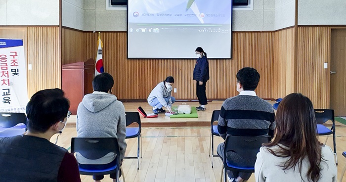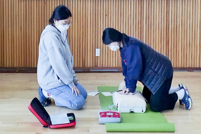 °æ»ó´ëÇб³ ÀÀ±ÞÀÇÇаú Àü¹®ÀÇ ¼º¾ÖÁø ±³¼ö·ÎºÎÅÍ ÀÀ±Þóġ¿Í ½ÉÆó¼Ò»ý¼úÀÇ ±âº»ÀûÀÎ ³»¿ë°ú Á߿伺 µî¿¡ ´ëÇÑ ÀÌ·Ð ±³À° ÈÄ, ±³À° Âü°¡ÀÚµéÀÇ ½ÉÆó¼Ò»ý¼ú°ú ÀÚµ¿½ÉÀåÃæ°Ý±â(AED)¸¦ Á÷Á¢ ½Ç½ÀÇØº¸´Â ½Ã°£À» °¡Á³´Ù.