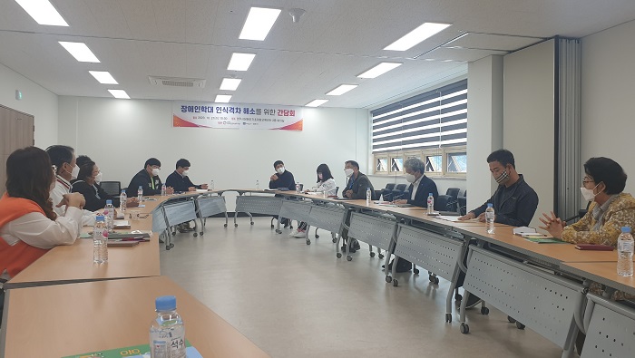[½Ã»çÄÚ¸®¾ÆÀú³Î=À̵¿¿ì ±âÀÚ] °æÁÖ½Ã¿Í °æ»óºÏµµÀå¾ÖÀαÇÀÍ¿ËÈ£±â°ü(°üÀå ¾ç¸¸Àç)Àº 21ÀÏ °æÁÖ½ÃÀå¾ÖÀαâÃÊÀçȰ±³À°¼¾ÅÍ¿¡¼ °æÁÖ½ÃÀå¾ÖÀκ¸È£ÀÛ¾÷Àå µî Àå¾ÖÀκ¹Áö½Ã¼³ 5°÷ÀÇ ½Ã¼³Àå ¹× Á¾»çÀÚ¸¦ ¸ð½Ã°í Àå¾ÖÀÎ Çдë ÀνİÝÂ÷ ÇØ¼Ò¸¦ À§ÇÑ °£´ãȸ¸¦ °³ÃÖÇß´Ù°í ÀüÇß´Ù.