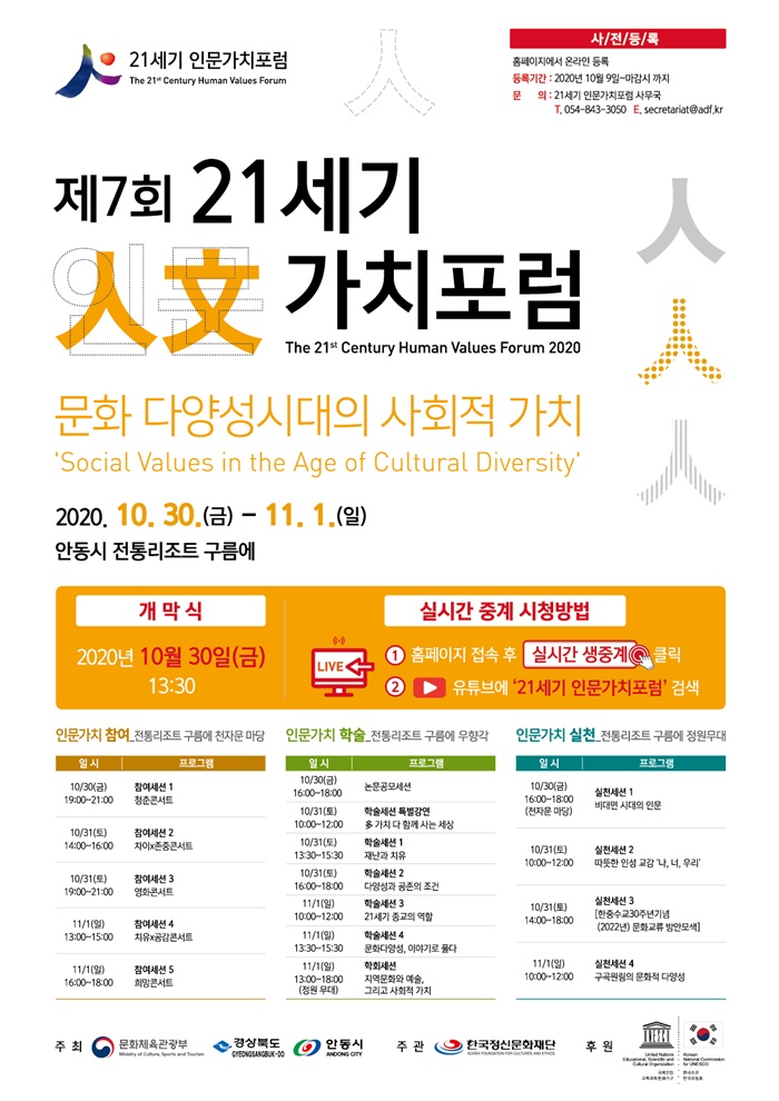 ‘¹®È ´Ù¾ç¼º½Ã´ë »çȸÀû °¡Ä¡’¸¦ ÁÖÁ¦·Î ÇÏ´Â ‘Á¦7ȸ 21¼¼±â Àι®°¡Ä¡Æ÷·³’ °³¸·½ÄÀº 30ÀÏ ¿ÀÈÄ 1½Ã 30ºÐºÎÅÍ, ¾Èµ¿½Ã ÀüÅ븮Á¶Æ® ‘±¸¸§¿¡’¿¡¼ °³ÃֵȴÙ.