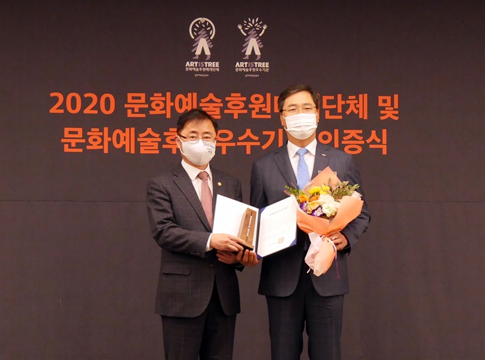 | BNK°æ³²ÀºÇà ¿©Ã¢Çö »ó¹«(»çÁø ¿À¸¥ÂÊ)°¡ ¹®ÈüÀ°°ü±¤ºÎ ¿À¿µ¿ì Á¦1Â÷°üÀ¸·ÎºÎÅÍ 2020³â ¹®È¿¹¼úÈÄ¿ø ¿ì¼ö±â°ü ÀÎÁõÆÐ¸¦ ¼ö¿© ¹Þ°í ÀÖ´Ù. |