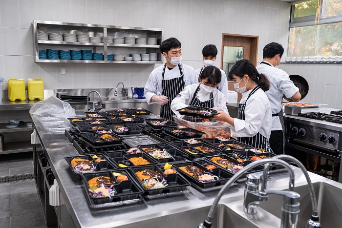 µ¿±¹´ë °æÁÖÄ·ÆÛ½º Á¶¸®¿Ü½Ä°æ¿µÇÐÀü°ø Á¶¸®Ãë¾÷µ¿¾Æ¸® WECC(White Elephant Chef Club)¼Ò¼Ó ÇлýµéÀº ÇаúÀü°ø±³À°°ú µ¿¾Æ¸® Ȱµ¿ µîÀ» ÅëÇØ ¹è¿î Áö½ÄÀ» Ȱ¿ëÇØ ¸¸µç ÄíŰ¿Í µµ½Ã¶ôÀ» °æÁֽà À¯ºñ Áö¿ª¾Æµ¿¼¾ÅÍ¿¡ Àü´ÞÇß´Ù.