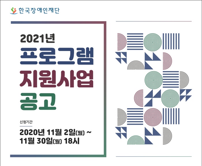 [½Ã»çÄÚ¸®¾ÆÀú³Î=ÀÌȯ¼ö ±âÀÚ] Çѱ¹Àå¾ÖÀÎÀç´Ü(ÀÌ»çÀå À̼º±Ô)Àº ÁöÁ¤ÁÖÁ¦»ç¾÷(´Ü±â/Áß±â), ÀÚÀ¯ÁÖÁ¦»ç¾÷, ¿¬´ë·±³·ù»ç¾÷À» ÁÖ¿ä ³»¿ëÀ¸·Î ÇÏ´Â ‘2021³â ÇÁ·Î±×·¥ Áö¿ø»ç¾÷ ’ °ø¸ð¸¦ 11¿ù 2ÀϺÎÅÍ 30ÀϱîÁö ½Ç½ÃÇÑ´Ù.
