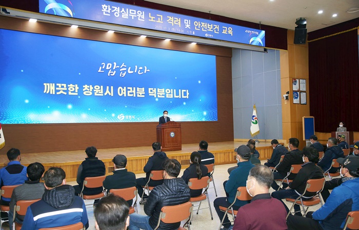 Ç㼺¹« ½ÃÀåÀº 3ÀÏ ¿ÀÈÄ 2½Ã ½Ã¹ÎȦ¿¡¼ ¿¸° 'ÄèÀûÇÑ µµ½Ãȯ°æ Á¶¼ºÀ» À§ÇØ È¯°æ½Ç¹«¿ø ¾ÈÀüº¸°Ç±³À°'¿¡ Âü¼®, "º¸ÀÌÁö ¾Ê´Â °÷¿¡¼ ¹¬¹¬È÷ °í»ýÇϽô ¿©·¯ºÐµéÀÌ °è¼Å¼ ½Ã¹ÎµéÀÌ ÄèÀûÇÑ È¯°æ¿¡¼ °Ç°ÇÑ »îÀ» ´©¸± ¼ö ÀÖ´Ù”°í °Ý·ÁÇϸç À̰°ÀÌ ¸»Çß´Ù.