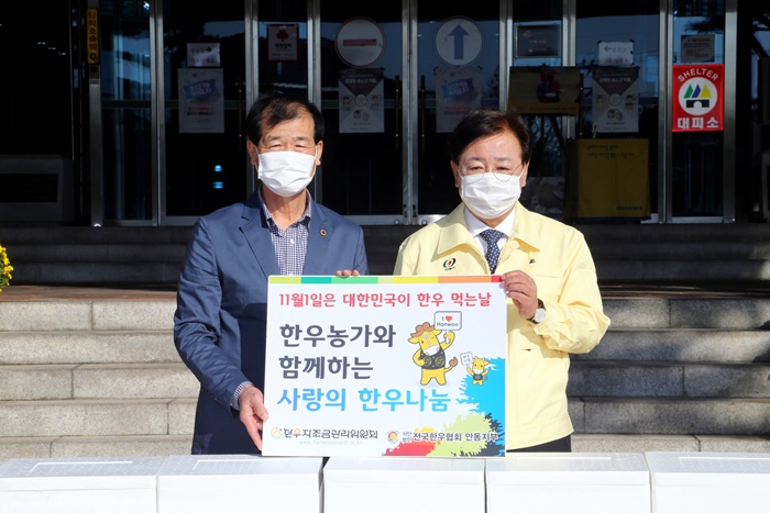 [½Ã»çÄÚ¸®¾ÆÀú³Î=±è¿¬ÇÐ ±âÀÚ] (»ç)Àü±¹ÇÑ¿ìÇùȸ ¾Èµ¿½ÃÁöºÎÀå À̽ÂÅÃÀº 5ÀÏ ÀÌ¿ô»ç¶ûÀ» À§ÇÑ ÇÑ¿ì ³ª´®Çà»ç¸¦ ÅëÇØ ¼ÒºÒ°í±â 40¹Ú½º(200¸¸ ¿ø »ó´ç)À» ¾Èµ¿½Ã¿¡ Àü´ÞÇß´Ù.