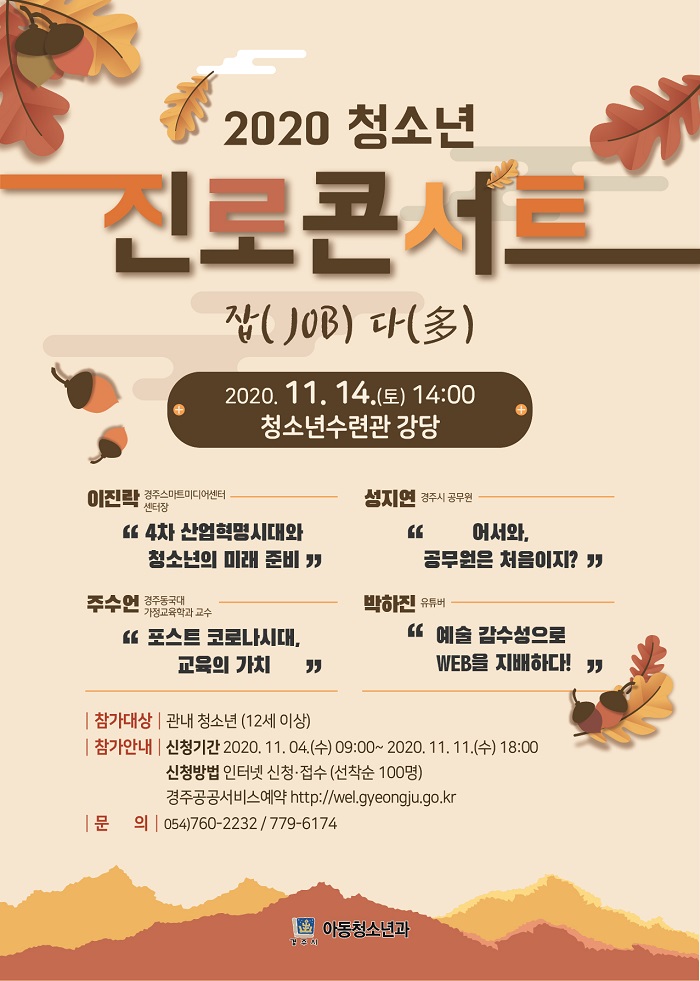 [½Ã»çÄÚ¸®¾ÆÀú³Î=À̵¿¿ì ±âÀÚ] °æÁֽà ¾Æµ¿Ã»¼Ò³â°ú´Â ¿À´Â 14ÀÏ ¿ÀÈÄ 2½Ã û¼Ò³â¼ö·Ã°ü¿¡¼ Áö¿ª û¼Ò³â(12¼¼ ÀÌ»ó)À» ´ë»óÀ¸·Î ‘û¼Ò³â Áø·ÎÄܼƮ Àâ´Ù(jobÒý)’¸¦ °³ÃÖÇÑ´Ù°í ÀüÇß´Ù.