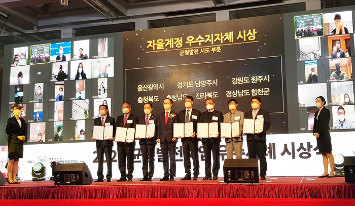 [½Ã»çÄÚ¸®¾ÆÀú³Î=Á¤Á¾¹Î ¼±ÀÓ±âÀÚ] ÇÕõ±º(±º¼ö ¹®ÁØÈñ)ÀÌ Áö³ 11ÀÏ ´ëÅë·É Á÷¼Ó ±¹°¡±ÕÇü¹ßÀüÀ§¿øÈ¸°¡ ÁÖ°üÇÏ´Â 2020³â ±ÕÇü¹ßÀü»ç¾÷ ¿ì¼ö»ç·Ê ½Ã»ó½Ä¿¡¼ ‘¸íǰ ¾ÖÇüö¹Ú´ÜÁö Á¶¼º»ç¾÷’ÀÌ ¿ì¼ö»ç·Ê·Î ¼±Á¤µÅ ±â°ü»óÀ» ¼ö»óÇß´Ù.