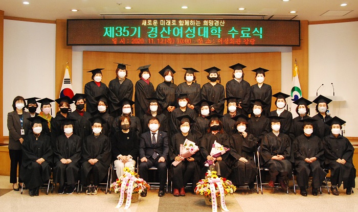 [½Ã»çÄÚ¸®¾ÆÀú³Î=À̵¿¿ì ±âÀÚ] °æ»ê½Ã(½ÃÀå ÃÖ¿µÁ¶)´Â 12ÀÏ ¿©¼ºÈ¸°ü °´ç¿¡¼ 50¿©¸íÀÇ ±³À°»ý°ú °ü°èÀÚ µîÀÌ Âü¼®ÇÑ °¡¿îµ¥¡¸Á¦35±â °æ»ê¿©¼º´ëÇС¹¼ö·á½ÄÀ» °¡Á³´Ù°í ¹àÇû´Ù.