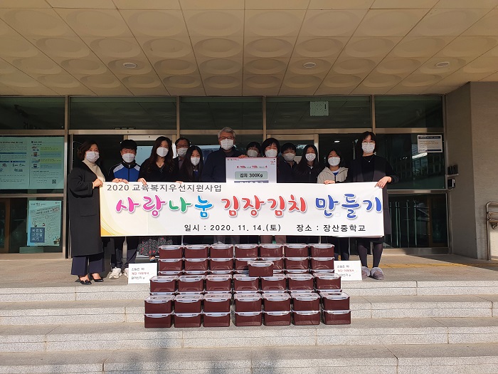 [½Ã»çÄÚ¸®¾ÆÀú³Î=À̵¿¿ì ±âÀÚ] °æ»ê½Ã Àå»êÁßÇб³(±³Àå À̼ºÈñ)´Â ±³À°º¹Áö¿ì¼±Áö¿ø»ç¾÷ÀÇ ÀÏȯÀ¸·Î »ç¶û³ª´® ±èÀå±èÄ¡ ¸¸µé±â Ȱµ¿À» ÅëÇØ ´ã±Ù ±èÄ¡ 300KgÀ» Áö¿ªÀÇ ¾î·Á¿î ÀÌ¿ô¿¡°Ô ÀüÇØ ´Þ¶ó¸ç ¼ºÎ1µ¿ÇàÁ¤º¹Áö¼¾ÅÍ¿¡ ±âŹÇß´Ù°í ÀüÇß´Ù.