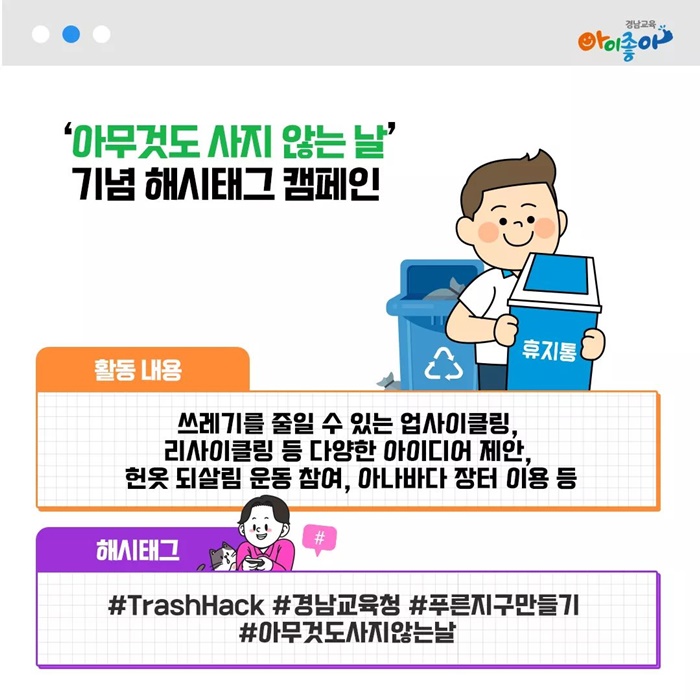 Çб³ ¹× °¡Á¤¿¡¼ ¾²·¹±â¸¦ ÁÙÀÏ ¼ö ÀÖ´Â »õȰ¿ë, ÀçȰ¿ëÀÇ ´Ù¾çÇϰí Âü½ÅÇÑ Á¦¾È, Çå¿Ê µÇ»ì¸² ¿îµ¿ Âü¿©, 100´ë °úÁ¦ ½Çõ Ȱµ¿À» »çÁø ¶Ç´Â µ¿¿µ»óÀÇ ÇüÅ·Π´©¸®¼ÒÅë¸Á(SNS)¿¡ ¿Ã¸± ¿¹Á¤ÀÌ´Ù.