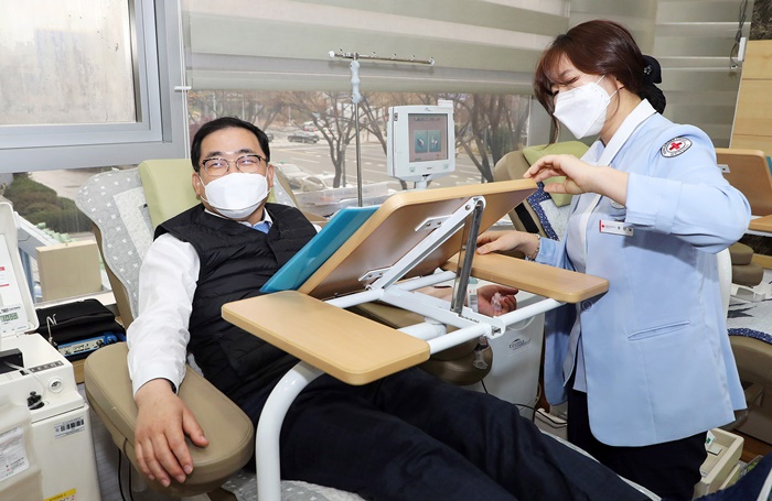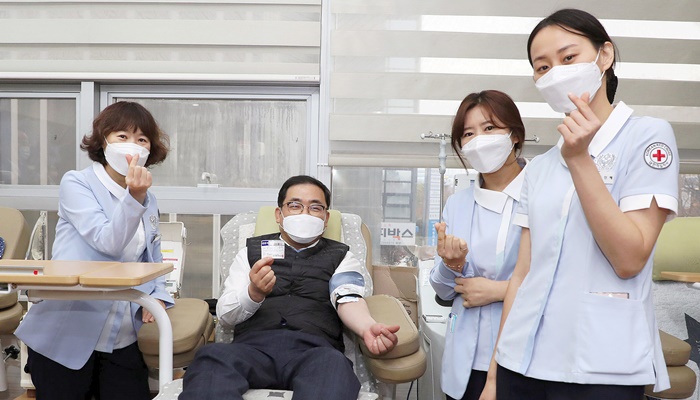 [½Ã»çÄÚ¸®¾ÆÀú³Î=Á¤Á¾¹Î ¼±ÀÓ±âÀÚ] Ç㼺¹« â¿ø½ÃÀåÀº 26ÀÏ ¿ÀÀü ÀÇⱸ Á¤¿ì»ó°¡ ÇåÇ÷ÀÇÁýÀ» ã¾Æ ‘»ç¶ûÀÇ ÇåÇ÷ ¸±·¹ÀÌ’¿¡ µ¿ÂüÇß´Ù. Äڷγª19·Î ÀÎÇÑ Ç÷¾×¼ö±Þ ¾î·Á¿ò ÇØ¼Ò¿¡ µµ¿òÀ» ÁÖ±â À§Çؼ´Ù.