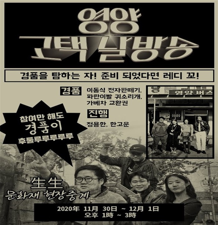 [½Ã»çÄÚ¸®¾ÆÀú³Î=±è¿¬ÇÐ ±âÀÚ] ¿µ¾ç±ºÀº ¹®ÈÀçûÀÌ ÈÄ¿øÇÏ´Â ‘°íÅÃÁ¾°«ÁýȰ¿ë»ç¾÷’ÀÇ ÀÏȯÀ¸·Î Áý¿¡¼ Áñ±â´Â‘¿µ¾ç °íÅà ¶óÀ̺꒸¦ 30ÀϺÎÅÍ 12¿ù1ÀϱîÁö µÎµé¸¶À»¿¡¼ ÁøÇàÇÑ´Ù.