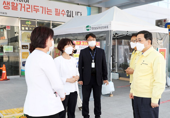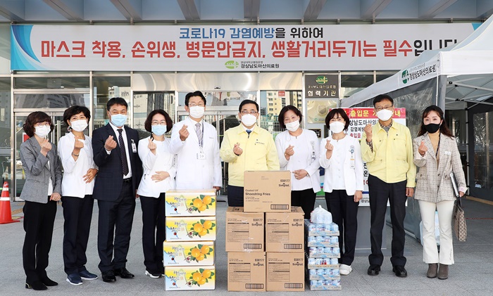 [½Ã»çÄÚ¸®¾ÆÀú³Î=Á¤Á¾¹Î ¼±ÀÓ±âÀÚ] Ç㼺¹« â¿ø½ÃÀåÀº 30ÀÏ ‘Äڷγª Àü´ãº´¿ø’ÀÎ °æ»ó³²µµ ¸¶»êÀÇ·á¿øÀ» ¹æ¹®ÇØ Äڷγª 19°¨¿°º´È¯ÀÚ Ä¡·á¸¦ À§ÇØ Èû¾²°í ÀÖ´Â ÀÇ·áÁøµé¿¡ °Ý·Á¿Í °¨»çÀÇ ¸¶À½À» ÀüÇß´Ù.