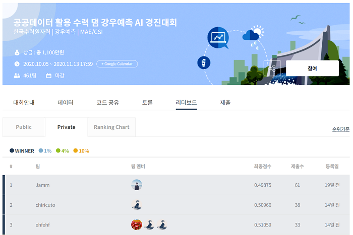 ¼öÀÚ¿ø Çаè¿Í µ¥ÀÌÅÍ Àü¹®°¡ µî ÃÑ 461°³ ÆÀÀÌ Âü°¡ÇØ Ä¡¿ÇÑ °æÀïÀ» ÆîÄ£ °á°ú, ·¹ÀÌ´õ ¿µ»óÀÇ ½Ã°£Àû ¼ø¼ Á¤º¸¸¦ ÃÖ´ëÇÑ È°¿ëÇÑ °¡Ãµ´ë ÃÖÀç¹Î ¾¾°¡ ¿ì½ÂÀ» Â÷ÁöÇß´Ù.