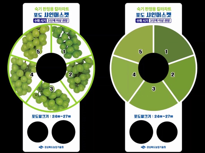 ÀÌ¿¡ °æºÏµµ³ó¾÷±â¼ú¿ø¿¡¼´Â »þÀθӽºÄÏÀÇ ¼÷±â¸¦ ÆÇ´ÜÇÏ´Â ±âÁØÀ¸·Î Ȱ¿ëÇÒ ¼ö ÀÖµµ·Ï °ú½ÇÀÌ ¼º¼÷Á¤µµ¿¡ µû¶ó °úÇÇ»öÀ» 5´Ü°è·Î ³ª´©¾î »ö»óÀ» Ç¥½ÃÇϰí, °¡¿îµ¥ ±¸¸ÛÀ» ¶Õ¾î °ú½Ç»ö»ó°ú ºñ±³ÇÒ ¼ö ÀÖ´Â ¼÷±âÆÇÁ¤¿ë Ä®¶óÂ÷Æ®¸¦ °³¹ßÇß´Ù.