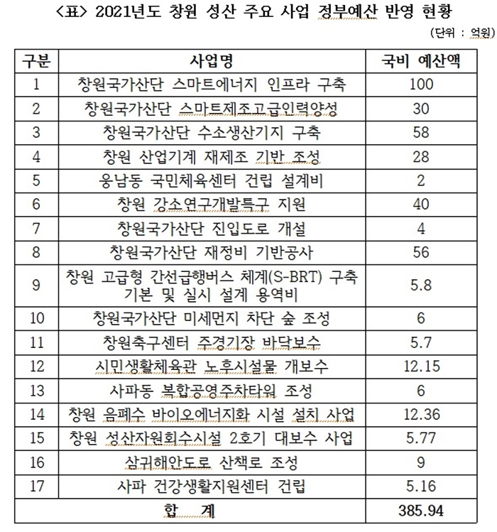 ¼¼ºÎÀûÀ¸·Î º¸¸é â¿ø °æÁ¦ÀÇ ÇÙ½ÉÀûÀÎ ÃàÀ» ´ã´çÇϰí Àִ â¿ø±¹°¡»ê´Ü ¿¹»êÀÇ °æ¿ì, ¡ã½º¸¶Æ®¿¡³ÊÁö ÀÎÇÁ¶ó ±¸Ãà 100¾ï¿ø ¡ã½º¸¶Æ®Á¦Á¶°í±ÞÀη¾缺 30¾ï¿ø ¡ãÀçÁ¤ºñ ±â¹Ý°ø»ç 56¾ï¿ø ¡ã¹Ì¼¼¸ÕÁö Â÷´Ü ½£ Á¶¼º 6¾ï¿ø ¡ãÁøÀÔµµ·Î °³¼³ 4¾ï¿øÀÇ »ç¾÷ ¿¹»êÀÌ ¹Ý¿µµÆ´Ù.