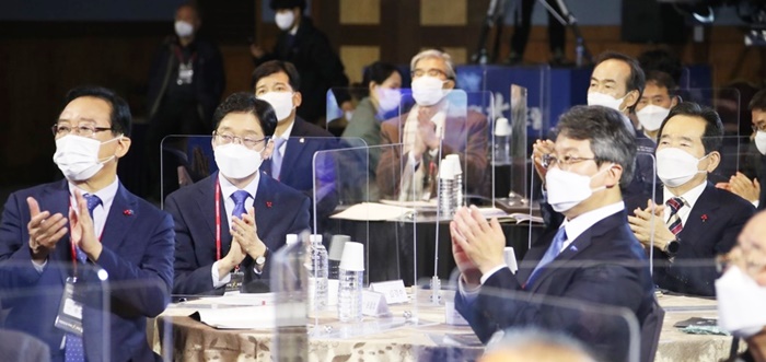 Á¤ ÃѸ®´Â "¿À´Ã °³ÃÖÇÑ 'Beyond Äڷγª, µ¿³²±Ç ¸Þ°¡½ÃƼ·Î' Æ÷·³¿¡ ¹Ú¼ö¸¦ º¸³½´Ù"¸é¼ "ÁöÀÚü¿Í ¹Î°£´ÜüµéÀÇ ³ë·ÂÀ» Á¸ÁßÇϱ⠶§¹®¿¡, ±×·¡¼ ¿À´Ã (ÀÚ¸®¸¦)ÇÔ²² ÇÑ °ÍÀÌ´Ù"°í µ¿³²±Ç ¸Þ°¡½ÃƼ ¿òÁ÷ÀÓ¿¡ ÈûÀ» ½Ç¾ú´Ù.