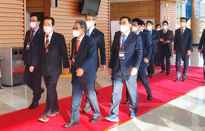| Á¤¼¼±Õ ÃѸ®°¡ 4ÀÏ Ã¢¿ø ÄÁº¥¼Ç¼¾ÅÍ¿¡¼ KNN ÁÖÃÖ·Î ¿¸° '´ëÇѹα¹ Áö¿ª´ëÆ÷·³' Âü¼®À» À§ÇØ °º´Áß KNN ȸÀå, Ç㼺¹« â¿ø½ÃÀå°ú ÀÔÀåÇϰí ÀÖ´Ù. |