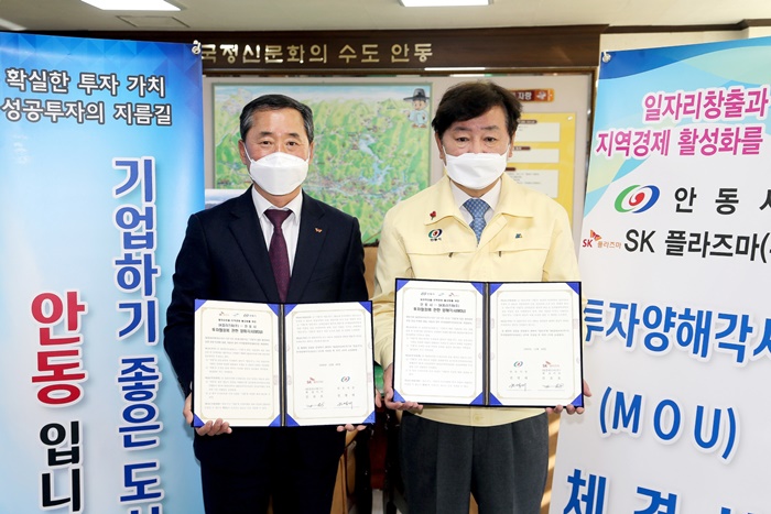 [½Ã»çÄÚ¸®¾ÆÀú³Î=±è¿¬ÇÐ ±âÀÚ] ¾Èµ¿½Ã(½ÃÀå ±Ç¿µ¼¼)¿Í SKÇöóÁ(ÁÖ)(´ëÇ¥ÀÌ»ç ±èÀ±È£)´Â 8ÀÏ ¿ÀÈÄ ¾Èµ¿½Ãû¿¡¼ Ç÷¾×Á¦Á¦ ÀǾàǰ Á¦Á¶°øÀå Áõ¼³ ÅõÀÚ¸¦ À§ÇÑ ÅõÀÚ¾çÇØ°¢¼(MOU)¸¦ ü°áÇß´Ù.