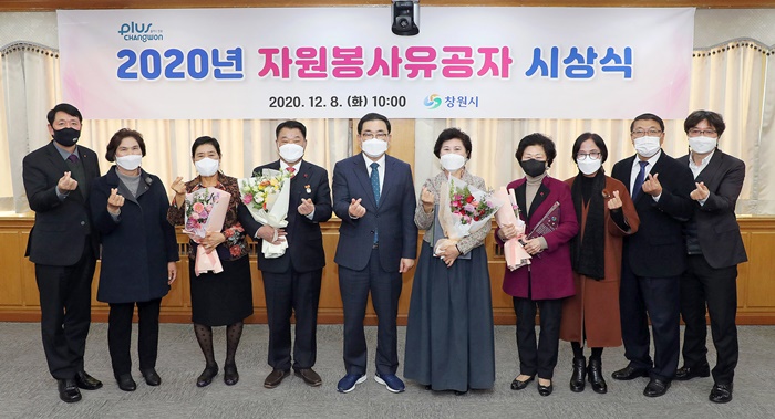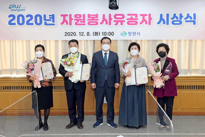 | â¿ø½Ã´Â 8ÀÏ ½ÃÁ¤È¸Àǽǿ¡¼ ÇÑ ÇØ µ¿¾È ÀÚ¿øºÀ»çȰµ¿À» ÆîÄ¡¸ç ¼ö°íÇÑ ÀÚ¿øºÀ»çÀ¯°øÀÚÀ» À§ÇÑ ‘2020³â ÀÚ¿øºÀ»çÀ¯°øÀÚ ½Ã»ó½Ä’À» °³ÃÖÇß´Ù. »çÁøÀº ¼ö»óÀÚµéÀÌ Ç㼺¹« ½ÃÀå°ú ±â³äÃÔ¿µÀ» Çϰí ÀÖ´Ù. |