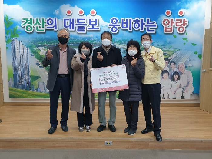 [½Ã»çÄÚ¸®¾ÆÀú³Î=À̵¿¿ì ±âÀÚ] °æ»ê½Ã ¾Ð·®À¾ Áö¿ª»çȸº¸ÀåÇùÀÇü(À§¿øÀå ÀÌ´öÀç)´Â 7ÀÏ ¾Ð·®À¾ ÇàÁ¤º¹Áö¼¾Å͸¦ ¹æ¹®ÇØ 'Èñ¸Á2021 ³ª´®Ä·ÆäÀÎ' ÀÌ¿ôµ½±â ¼º±Ý 300¸¸¿øÀ» ±âŹÇÏ¸ç ‘Èñ¸Á ¾Ð·®’À» À̾°¥ ù ¹øÂ° ³ª´® ÁÖÀÚ°¡ µÆ´Ù°í ÀüÇß´Ù.