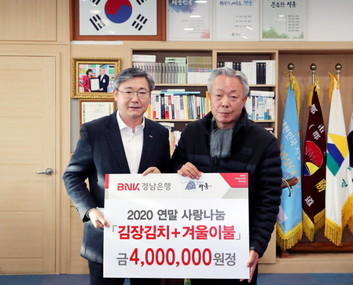 [½Ã»çÄÚ¸®¾ÆÀú³Î=¼ÕÁ¤Çö ±âÀÚ] BNK°æ³²ÀºÇà Çϵ¿ÁöÁ¡(ÁöÁ¡Àå ¹®ÁØÅÂ)ÀÌ ¿¬¸»À» ¸Â¾Æ »ýȰÀÌ ¾î·Á¿î ±º¹ÎµéÀÌ µû¶æÇÑ °Ü¿ïÀ» º¸³¾ ¼ö ÀÖµµ·Ï »ç¶ûÀÇ ¿ÂÁ¤À» º£Ç®¾î ÈÁ¦´Ù.