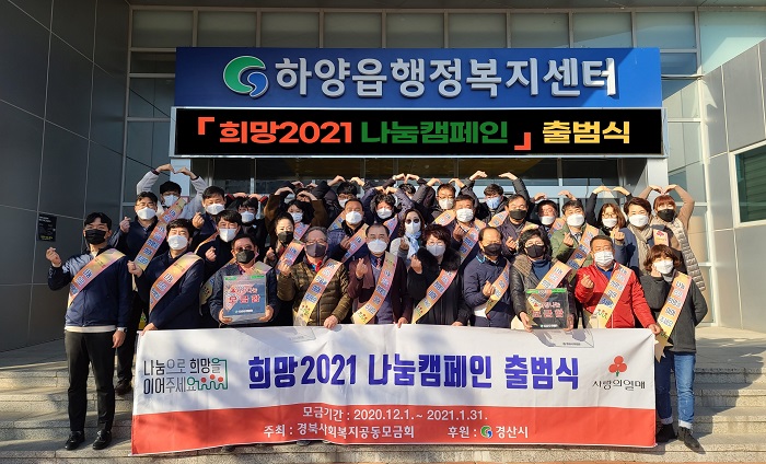 [½Ã»çÄÚ¸®¾ÆÀú³Î=À̵¿¿ì ±âÀÚ] °æ»ê½Ã ÇϾçÀ¾(À¾Àå ±èÈï¼ö)Àº 9ÀÏ ÀÌÀåÇùÀÇȸ, »õ¸¶À»ÁöµµÀÚÇùÀÇȸ, »õ¸¶À»ºÎ³àȸ, û³âȸ, ¹Ù¸£°Ô»ì±âÀ§¿øÈ¸, üÀ°È¸, ±Ý¼Ûȸ ȸ¿ø, Á÷¿ø µî 40¿©¸íÀÌ Âü¼®ÇÑ °¡¿îµ¥ ÇϾçÀ¾ÀüÁ¤¿¡¼ 'Èñ¸Á2021 ³ª´®Ä·ÆäÀÎ' Ãâ¹ü½ÄÀ» °³ÃÖÇÑ ÈÄ ²Þ¹Ù¿ì½ÃÀå¿¡¼ »ç¶ûÀÇ ¿¸Å ´Þ¾ÆÁÖ±â Ä·ÆäÀÎÀ» ÁøÇàÇß´Ù.