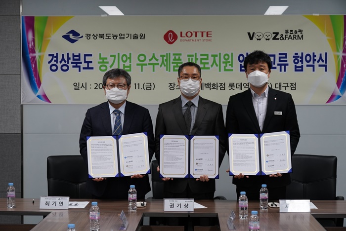 À̳¯ Çà»ç¿¡ ¾Õ¼ °æºÏµµ³ó¾÷±â¼ú¿ø°ú ·Ôµ¥¹éÈÁ¡ ´ë±¸Á¡Àº °æºÏÁö¿ª ³ó»ê¹°°¡°ø»ç¾÷ »ý»êÁ¦Ç°¿¡ ´ëÇÑ ÆÇ¸Å¸¦ ÃËÁøÇÏ°í »óÈ£ Çù·ÂÀ» À§ÇÑ ¾÷¹«Çù¾àÀ» ü°áÇß´Ù.
