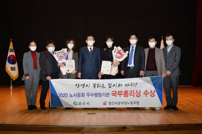 [½Ã»çÄÚ¸®¾ÆÀú³Î=À̵¿¿ì ±âÀÚ] °æ»ê½Ã¿Í °æ»ê½Ã°ø¹«¿ø³ëµ¿Á¶ÇÕÀÌ ÇàÁ¤¾ÈÀüºÎ°¡ ÁÖ°üÇÑ 2020³â °ø¹«¿ø ³ë»ç¹®È ¿ì¼öÇàÁ¤±â°ü ÀÎÁõÁ¦ ½É»çÆò°¡¿¡¼ ±¹¹«ÃѸ® ǥâÀ» ¹Þ¾Ò´Ù. ½Ã»ó½ÄÀº 10ÀÏ Á¤ºÎ¼¼Á¾Ã»»ç¿¡¼ °³ÃÖÇß´Ù.