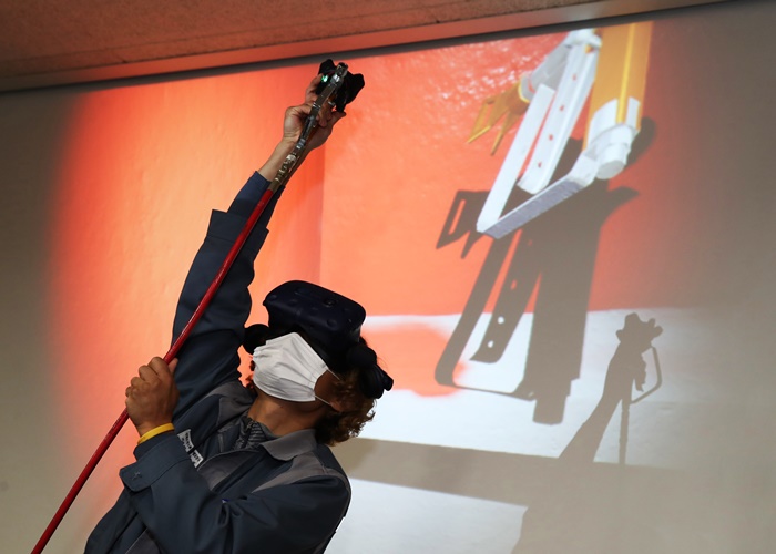 »ç¿ëÀÚ´Â °¡»ó °ø°£¿¡¼ ½ÇÁ¦ ÀÛ¾÷ ȯ°æ°ú µ¿ÀÏÇÏ°Ô ±¸ÇöµÈ ¼±¹Ú ±¸Á¶¹°¿¡ ½ºÇÁ·¹ÀÌ °Ç(spray gun)À» Á¶ÀÛÇØ ģȯ°æ µµ·á¸¦ »ç¿ëÇÑ µµÀå ÀÛ¾÷À» üÇèÇÒ ¼ö ÀÖÀ¸¸ç, ½Ç½À ÈÄ °ÇÁ¶ µµ¸· µÎ²² µî ½Ç½À °á°úµµ ½Ç½Ã°£À¸·Î È®ÀÎÇÒ ¼ö ÀÖ´Ù.