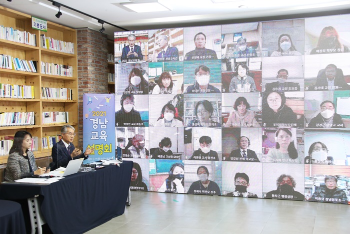 | ¹ÚÁ¾ÈÆ °æ³²±³À°°¨ÀÌ 14ÀÏ ¿ÀÈÄ ±³À°Ã» °ü°èÀÚ¿Í ±³Á÷¿ø, Çб³¿î¿µÀ§¿ø, Çкθð µî 2,100¿© ¸íÀÌ Âü¿©ÇÑ °¡¿îµ¥ ‘2021 °æ³²±³À°¼³¸íȸ’¸¦ ¿Â¶óÀÎÀ¸·Î ¿°í, ³»³â ±³À°Á¤Ã¥À» ¼³¸íÇϰí ÀÖ´Ù. |