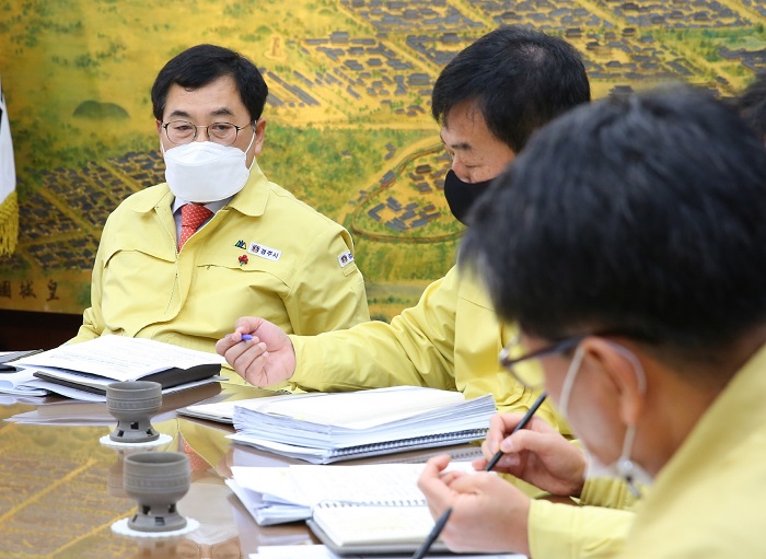 | ¡ã ÁÖ³«¿µ °æÁÖ½ÃÀåÀÌ 14ÀÏ ¿ÀÀü ¿¸° ±¹·¼Ò·º»ºÎÀå ȸÀÇ¿¡¼ Áö¹æÀÚÄ¡¹ý Àü¸é °³Á¤¿¡ µû¸¥ ÈļÓÁ¶Ä¡¿Í °ü·Ã ÁÖ¹« ºÎ¼ °ø¹«¿øµé°ú ³íÀÇÇϰí ÀÖ´Ù. |