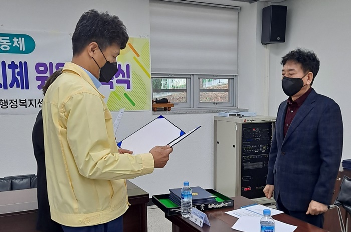 | °ÅÁ¦½Ã ¿ÁÆ÷2µ¿Àº 14ÀÏ ¿ÁÆ÷2µ¿ ÇàÁ¤º¹Áö¼¾ÅÍ È¸Àǽǿ¡¼ Á¦4±â µ¿ Áö¿ª»çȸº¸ÀåÇùÀÇü À§¿ø À§Ã˽ÄÀ» °¡Á³´Ù. »çÁøÀº Á¤ÅÂÁø µ¿ÀåÀÌ À§ÃËÀåÀ» Àü´ÞÇϰí ÀÖ´Ù. |