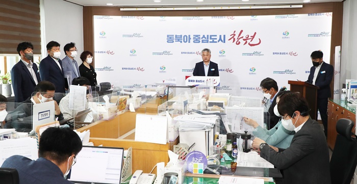 | Á¶ÀÏ¾Ï Ã¢¿ø½Ã ¾ÈÀü°Ç¼³±³Åë±¹ÀåÀÌ 22ÀÏ Ã¢¿ø½Ãû ÇÁ·¹½º¼¾ÅÍ¿¡¼ Á¤·Êºê¸®ÇÎÀ» Çϰí ÀÖ´Ù. |