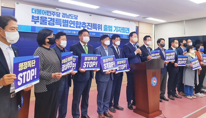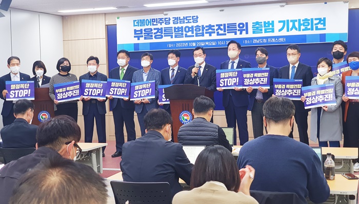 [½Ã»çÄÚ¸®¾ÆÀú³Î=Á¤Á¾¹Î ¼±ÀÓ±âÀÚ] ´õºÒ¾î¹ÎÁÖ´ç °æ³²µµ´çÀÌ 20ÀÏ °æ³²µµÃ» ÇÁ·¹½º¼¾ÅÍ¿¡¼ ±âÀÚȸ°ßÀ» ¿°í ºÎ»ê·¿ï»ê·°æ³²(ÀÌÇÏ ºÎ¿ï°æ) Ưº°¿¬ÇÕÀ» Á¤»ó±Ëµµ·Î º¹±Í½Ã۱â À§ÇÑ 'ºÎ¿ï°æÆ¯º°¿¬ÇÕÃßÁøÆ¯º°À§¿øÈ¸' Ãâ¹üÀ» ¼±¾ðÇß´Ù.